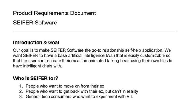 NOTE: The product "SEIFER Software" and its features were invented to create this portfolio. SEIFER is an A.I. antagonist in my creative writing project, HAIR.